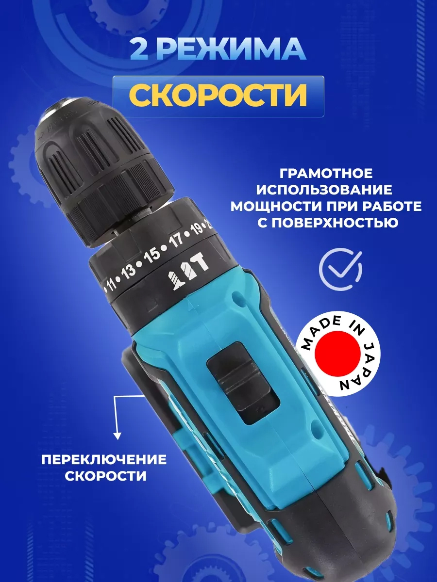 Одной из главных особенностей данного шуруповерта является его наборность. В комплекте вы найдете 23 различных насадки, что позволяет использовать инструмент для широкого спектра ремонтных и отделочных работ. Шуруповерт обладает двумя скоростями, что делает его универсальным помощником в любых задачах.