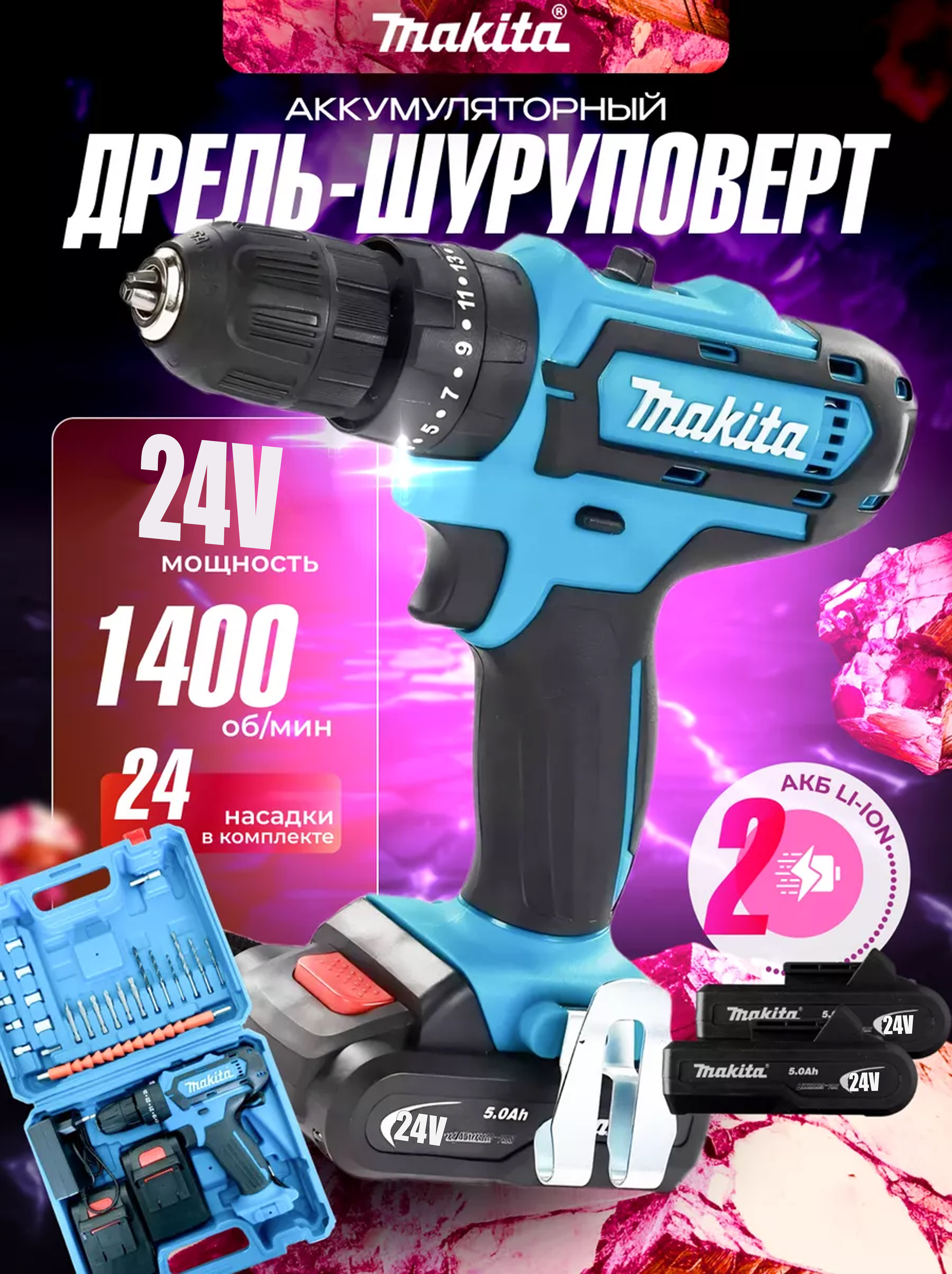 Аккумуляторный шуруповерт Makita — это идеальный выбор для тех, кто ценит качество и надежность в работе. С мощным 24V Li-ion аккумулятором на 5.0 А/ч, этот инструмент обеспечит вам долгую и эффективную работу без необходимости постоянной подзарядки.